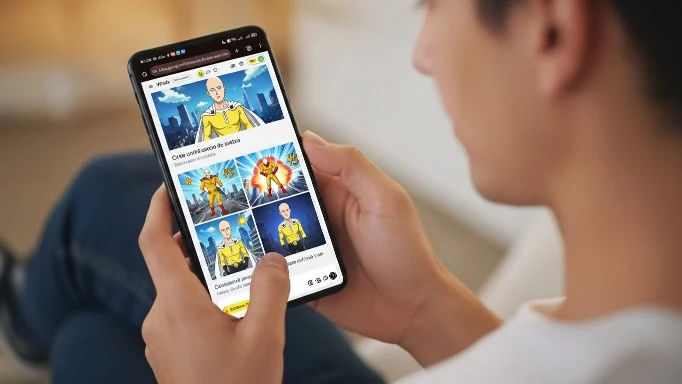 Chegou a hora de criar o nosso personagem estilo Saitama. Para isso, vamos usar o Whisk, uma ferramenta que permite criar avatares personalizados de forma simples e rápida. Solte a criatividade e crie um personagem que combine com o seu roteiro e a sua voz. Pense nos detalhes: o corte de cabelo, a roupa, os músculos… Tudo isso vai contribuir para a personalidade do seu avatar. Com o Whisk, você pode criar vídeos animados com um visual único e original, sem precisar ser um expert em design.